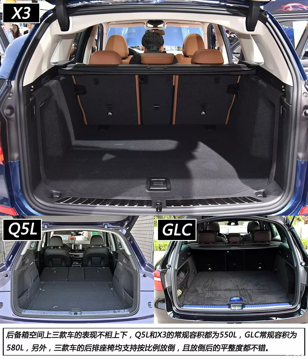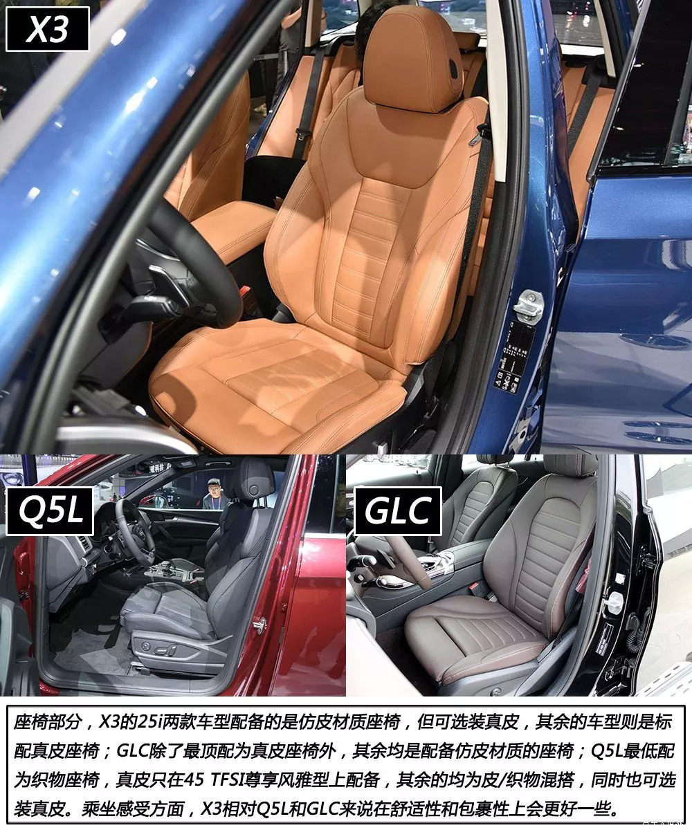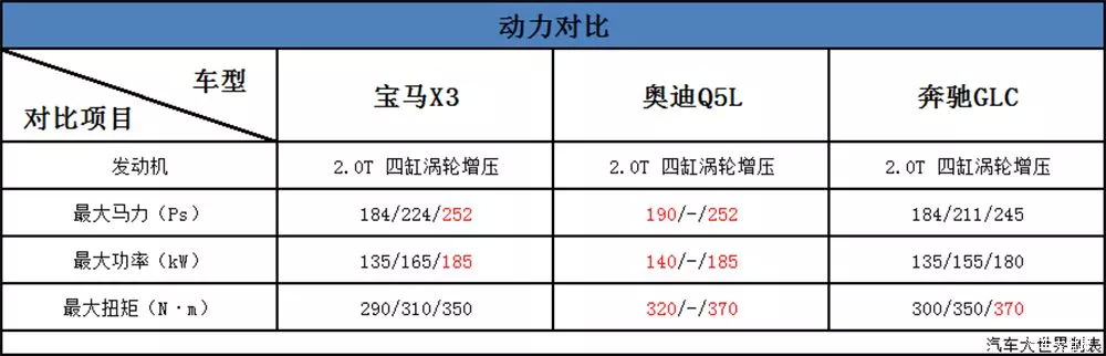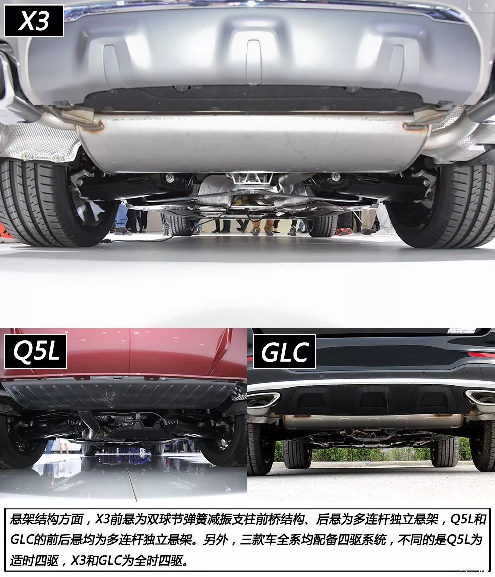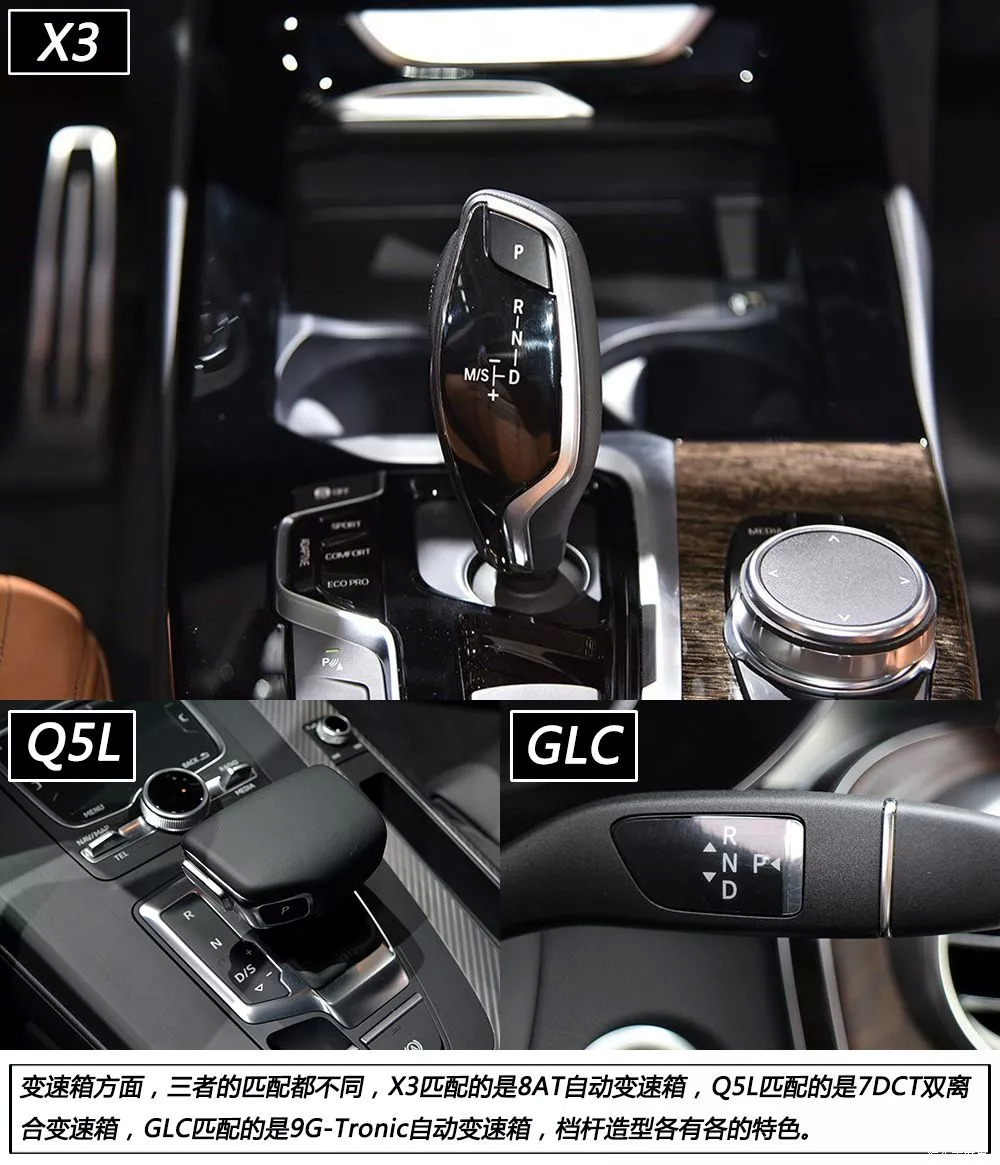 动力:X3和GLC选择丰富,Q5L低配数据好看
