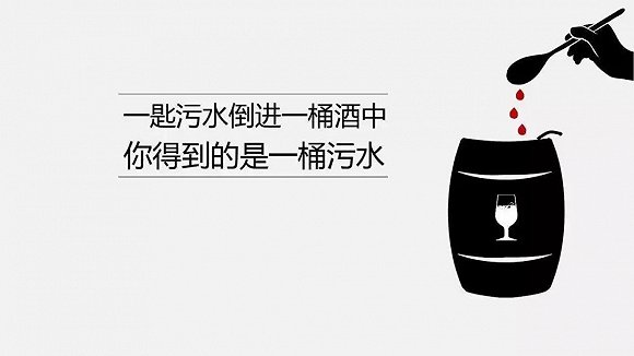 说的是:一匙酒倒进一桶污水,得到的是一桶污水;把一匙污水倒进一桶酒里,得到的还是一桶污水。