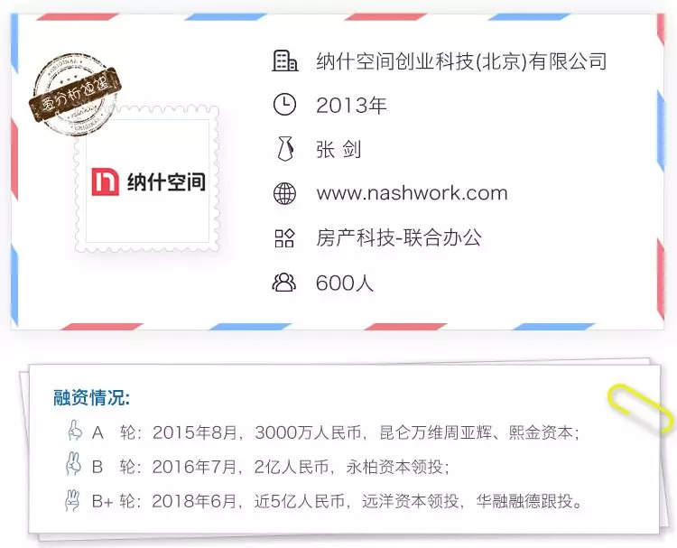 纳什空间的项目是从2013年开始,当时我们判断,小微企业会在中国大规模快速的起来,因为那时候两个趋势已经比较明确了,一是制造业向服务业转型,二是移动互联网带来的企业小型化趋势。