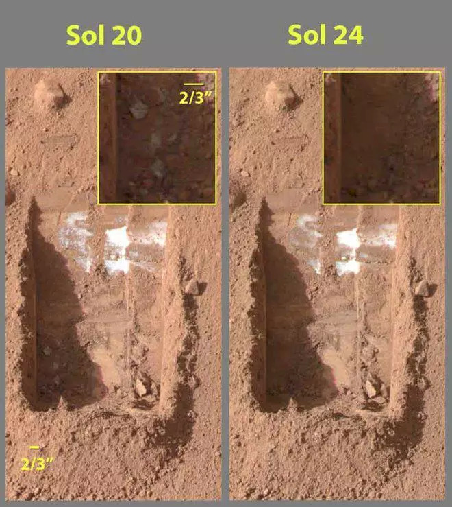 凤凰号挖到的冰块出现明显的融化趋势(图自NASA)