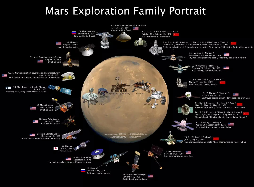直到今天,火星依然有共计8个探测器(美国5个,欧洲2个,印度1个)在工作,今年五月新发射的NASA洞察号探测器也正在飞往火星途中。而到了2020年,美国、中国、欧盟、印度等国又将掀起新一波探测高潮,我国也将挑战一次实现轨道器、着陆器和火星车的复杂任务。希望这些探测器为我们带来更多研究结论,载人登陆火星的意义也会显著增强。