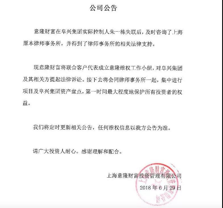上图为意隆财富相关公告