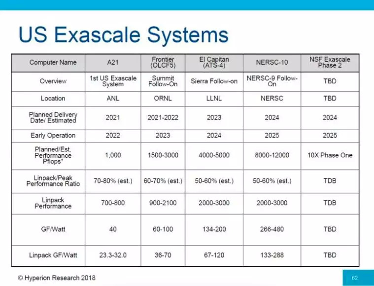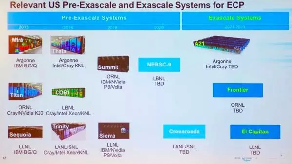 美国在今天ISC18上公布的E级计算及原型机的相关计划