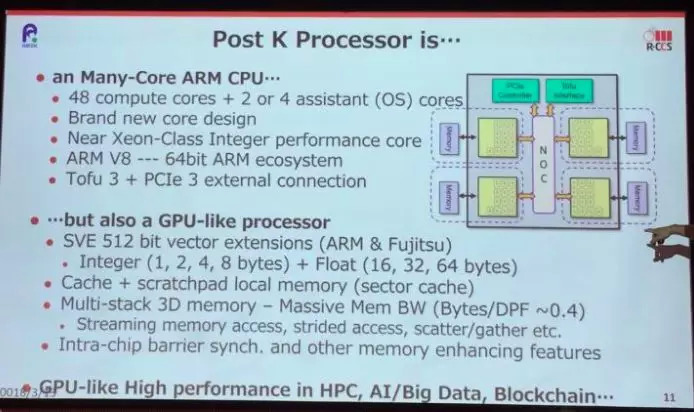 在今年的ISC 2018上,石川裕介绍了日本E级计算机的研制进展。日本的目标是在2021年初,由富士通研制成功第一台E级计算机“后京”(Post-K),并部署在RIKEN,速度将是日本现有最快超级计算机“京”(K)的100倍。
