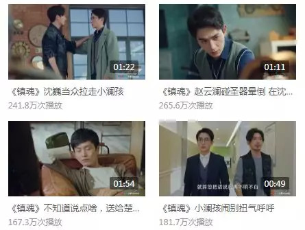《通知》实行效果大打折扣的主要原因在于,版权正片也需要视频cut为之维持热度、引流观众。如《镇魂》主页中除了设置正片板块,还有预告、花絮、独家策划、剧集看点等板块,这些板块内容以5分钟以内的短视频为主要形式,而这些cut的播放量也很可观,少则几千多则百万。