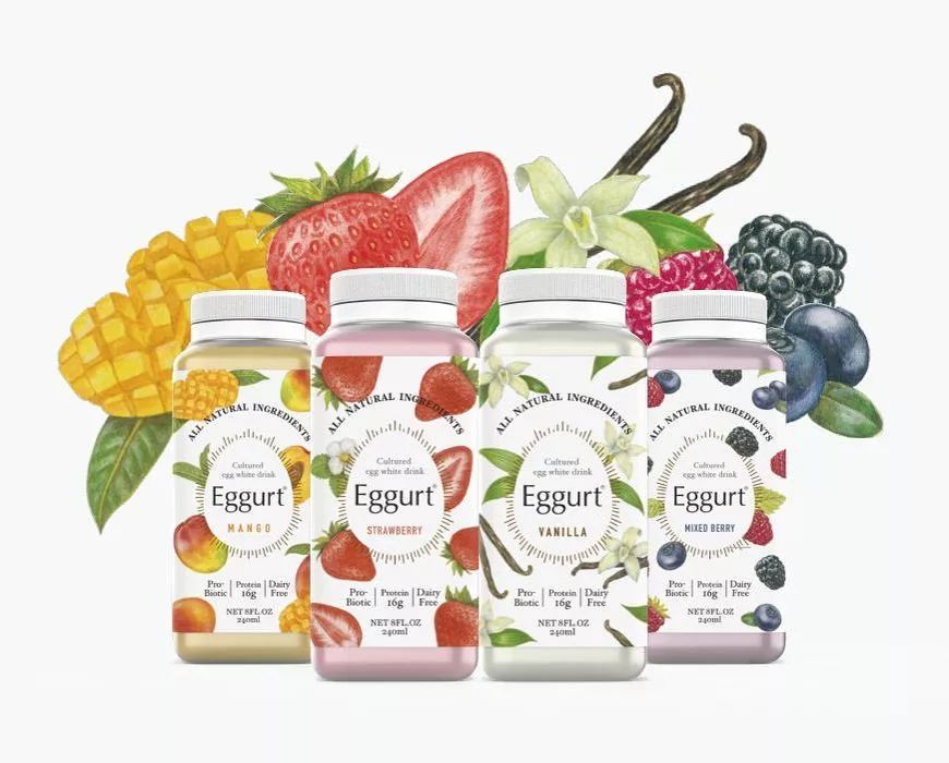 Eggurt是一款由巴氏杀菌蛋清制成的新型益生菌饮料,味道清爽,尝起来就像酸奶饮料或开菲尔,每瓶Eggurt含有高达16克蛋白质,同时含有丰富的益生菌,不含脂肪、胆固醇,且无乳制品、麸质及大豆等过敏原。目前推出香草、草莓、混合浆果和芒果4款风味。Shunsuke Ishida表示,他开发这款产品是为了填补市场上用鸡蛋制作的高蛋白、无乳制品的即食酸奶的空白。
