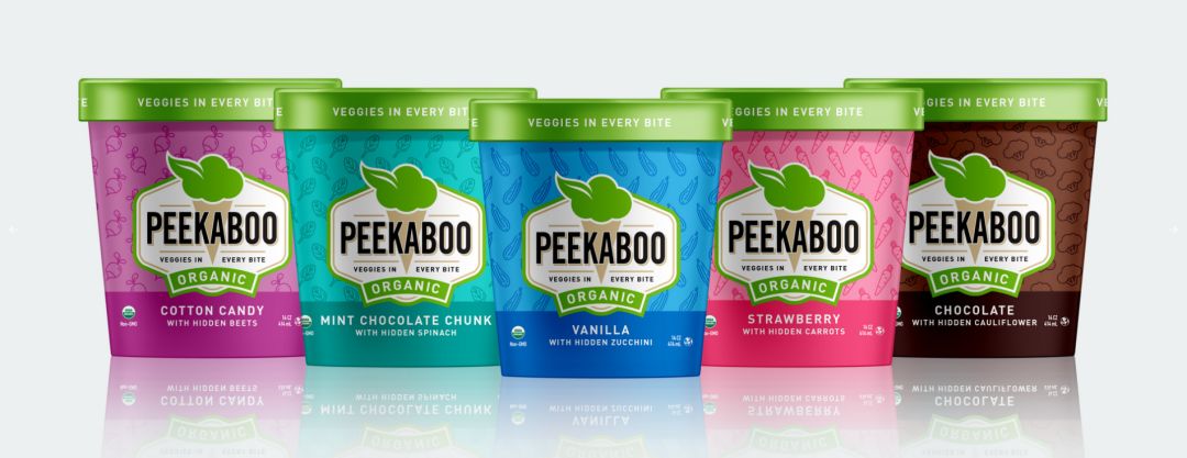 为了让爱吃冰淇淋的家人摄入足够的蔬菜,创始人Jessica Levison经过大量测试开发了Peekaboo 冰淇淋,这款冰淇淋的寓意是与嘴巴躲猫猫的蔬菜冰淇淋。