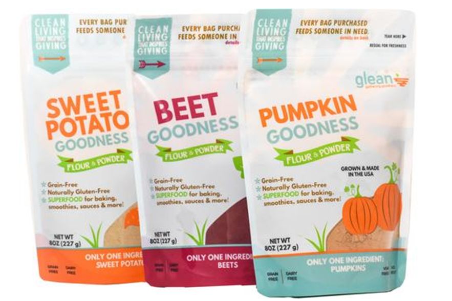 该系列蔬菜粉/面粉产品由甜菜、红薯或南瓜等蔬菜制成,这些原料或是形状古怪,或是不符合大多数消费者想要的尺寸,如果不经Glean利用则会被丢弃。Glean公司利用这些原料生产的产品非转基因、天然无麸质,富含维生素及纤维,具有良好的抗氧化性,符合纯素食饮食及旧石器饮食要求,可替代普通面粉,应用于烘焙,或作为汤、酱汁或冰沙的增稠剂。