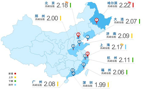 除了哈尔滨以及常年拥堵的北上广,其他进入“堵车十强”的省会城市还有杭州、济南、福州和郑州,大连和深圳作为非省会城市进入前十。