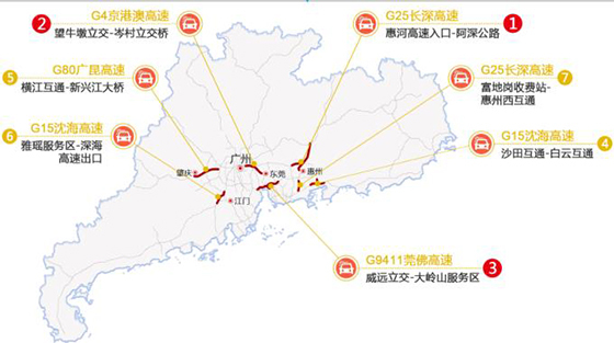 珠三角拥堵分散、事故少
