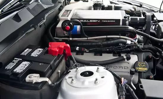 赛麟野马《极品飞车》定制版采用4气门双顶置凸轮轴V8发动机,相比普通赛麟野马车型马力增加25匹,百公里加速成绩在3.5秒内。打开引擎盖,发动机核心在于赛麟自主研发的双螺旋机械增压装置。这个机械增压装置配备二级中冷器,也就是在原有中冷器基础上,再增加一个中冷装置,它与发动机体整合在一起,正好位于两排气缸的V型夹角中,所有的管道的设计都力图将弯角减至最少,以直接将冷却后的空气送迸发动机,直接的管道设计让进入发动机的气流增加了50%。此外赛麟设计了个独特的漏斗状进气,使中冷器的进气效率也达到最优,让动力输出更强大。