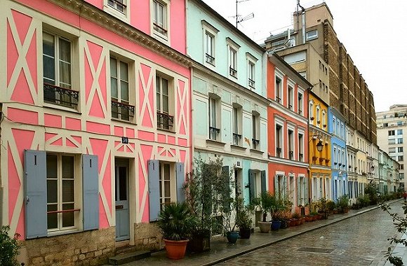 Rue Cremieux 法国巴黎 在人流量巨大的的巴黎里昂火车站附近,有这么一个色彩鲜艳又很安静的地方,它的名字叫Rue Crémieux。整条街的外墙都涂上了很柔和的色彩,21号是绿色的、22号是蓝色的…没错,在一个处处彰示高雅的城市,这条街是一个意想不到的惊喜。如果你对它一无所知,那么就很容易错过。位于巴士底区的这片五彩斑斓的乐土,有很多被精心修缮的老楼房,它们的建筑细节都非常古怪有趣。