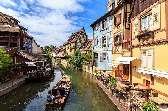 Grand Rue Colmar 法国阿尔萨斯 科尔马是一个由许多不规则形状的广场组成的广阔步行区,广场之间的道路穿插着圣马丁教堂 、人头屋等等历史名胜。科尔马仍然保留着16世纪的建筑风格——木筋屋,由木材搭建的多面形屋顶,独特的设计,每栋皆具独特品味。一座座木屋,使小城充满着浓郁的阿尔萨斯风情。伊尔河支流酪赫河从科尔马静静淌过,清清的河水荡涤了浮躁的尘埃,获有美名 “法国小威尼斯"。