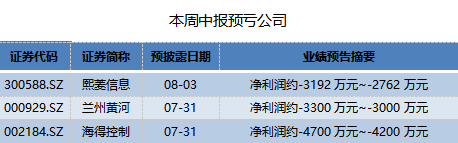 本周还有三家计划披露业绩亏损的公司,分别是熙菱信息(300588.SZ)、兰州黄河(000929.SZ)、海得控制(002184.SZ)。