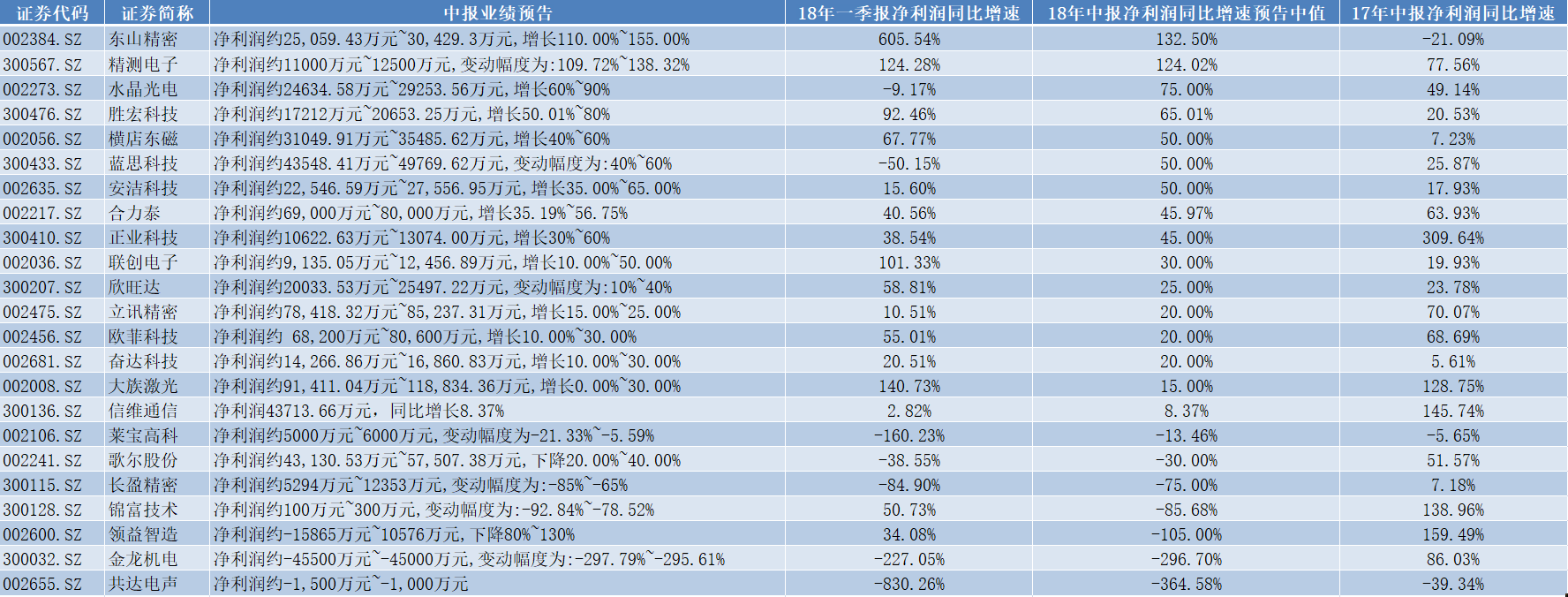 上半年产业链相关上市公司的业绩也印证了市场的担忧,截至7月29日,已经发布中报业绩预告的23家公司中有7家公司出现归属于母公司股东的净利润(下称“净利润”)同比下滑。增长的16家公司中,有7家公司预告的同比增速中值低于30%,这一数据与去年同期19家公司净利润同比增速超过50%的情况相比,可谓差距颇大。另外,中报业绩预告的中值与一季度净利润同比增速的情况来看,23家公司中仅有10家业绩增速有所好转。