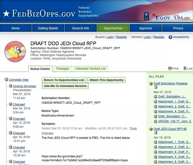 去年9月,国防部官员宣布他们将大举进入云端。自那时起,JEDI 计划就已演变成一项价值100亿美元的单一合同,预计在 2018年底前签约。