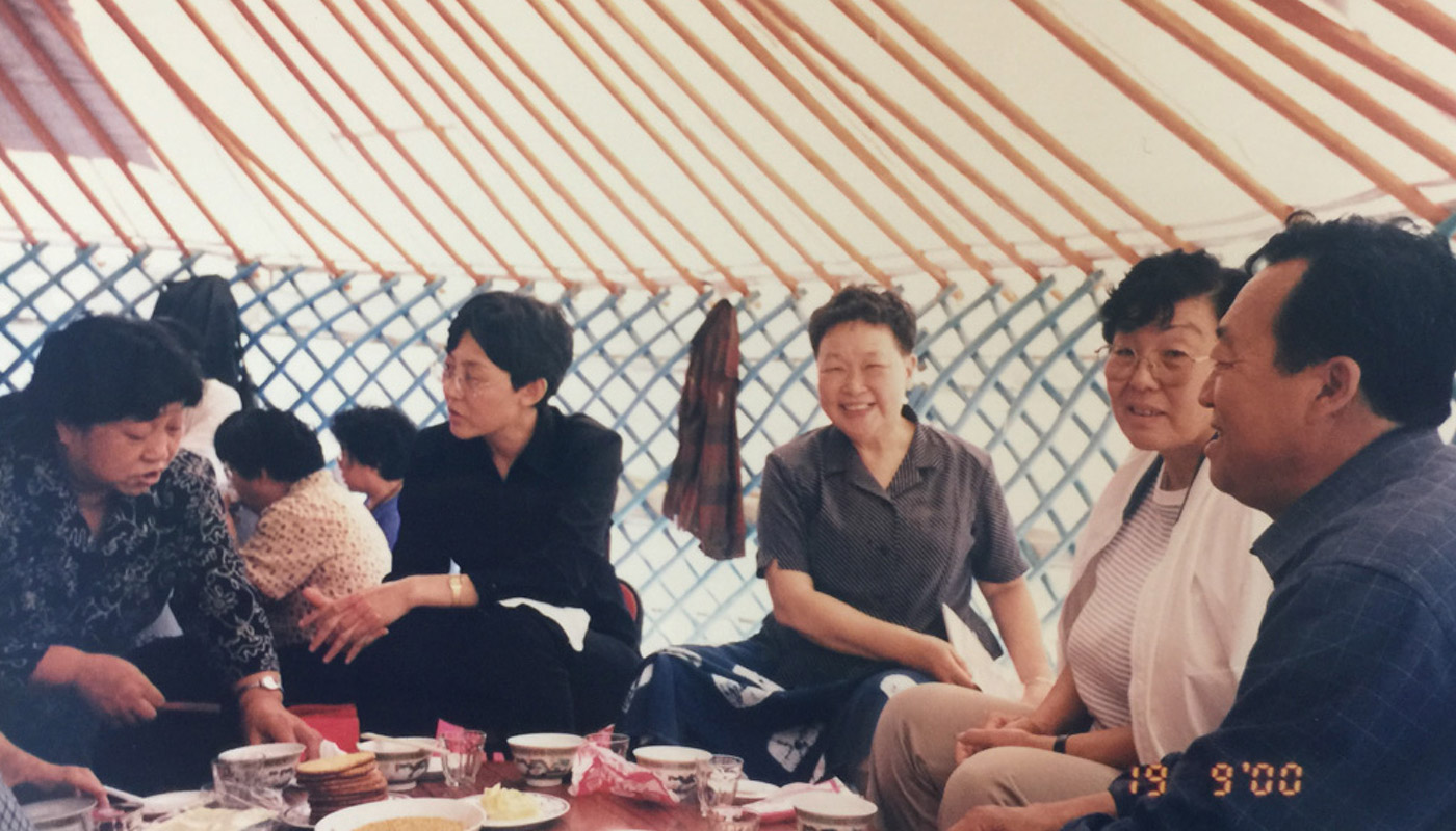 题图为2000年,女子学院到内蒙古赤峰为贫困女性培训农牧技术。左三为王翠玉。