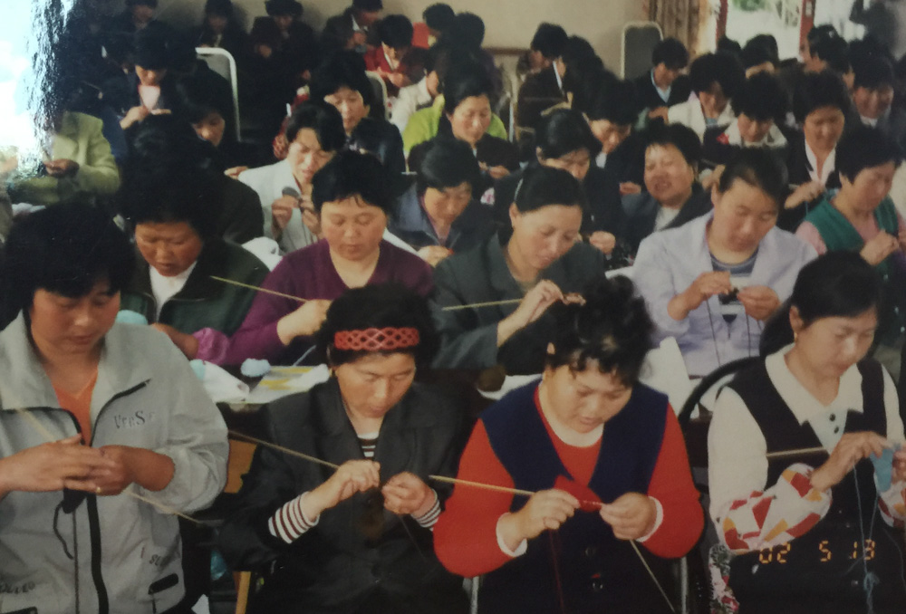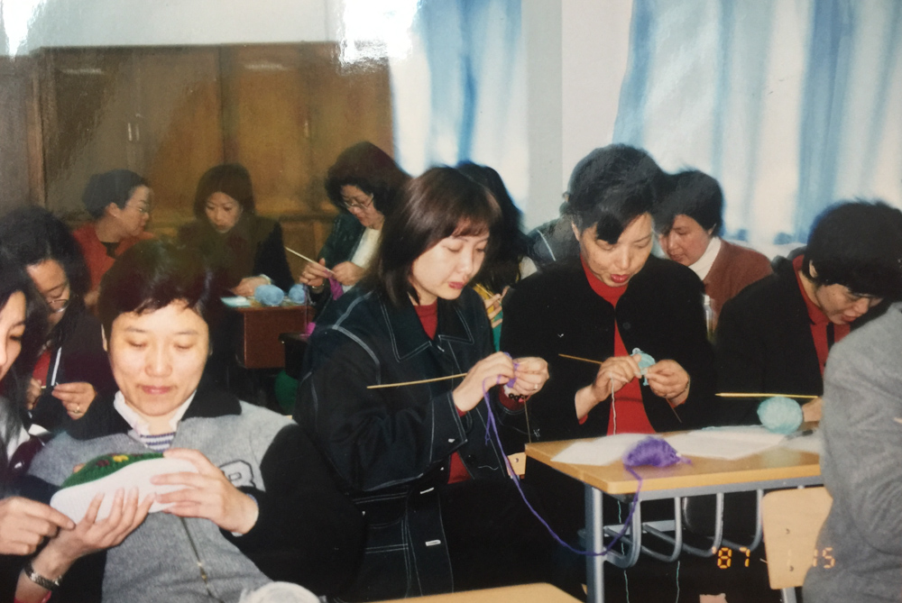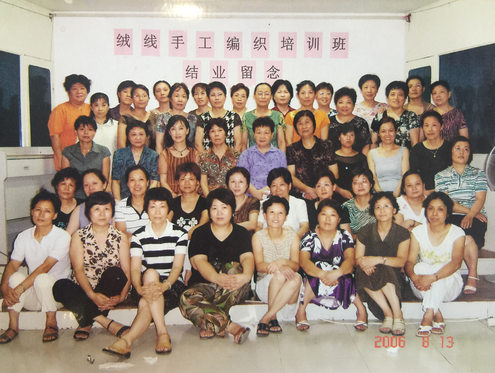 2001年,学院开了手工编织课程。因为王翠玉想到,手工编织很适合下岗女工,很多人原本就会打毛衣,工作方式也自由,可以一边做家务,一边编织。马金女在唐山中学上的,就是学院的第一个编织班。