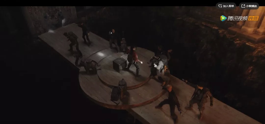 第一场对巨型平衡木的呈现,颇有原著小说的风范。进入地宫之后,心怀鬼胎的众人发现了巨大财富,贪婪欲望触发了机关,众人在巨大平衡木上摇摆,稍有不慎就会掉入深渊。为了脱险,众人只有建立与对方的信任,一对一对同时撤离;