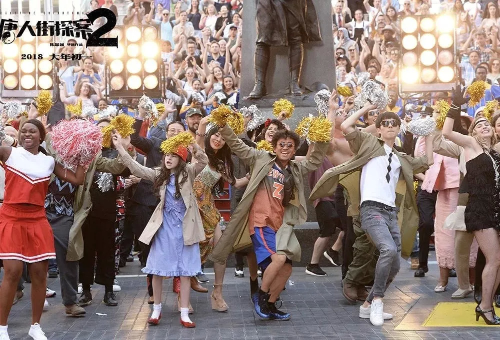 在虚拟周边方面:比如《唐探2》上映前,QQ高能舞蹈教室推出“扭腰舞”火爆一时。而且,当时正值春节档,QQ还特别推出H5“测运势”界面,颜值担当刘昊然直接化身神算子,与用户互动。《唐探2》上映后,票房不断逆袭,最终达到近34亿。