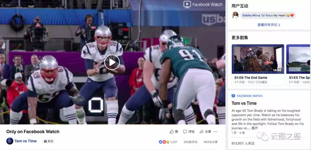 先简单看一下Facebook Watch,产品形态和内容来源与视频网站都比较相似,会在界面局部提供与社交相关的用户间交互功能,但相比熟人社交而言,海量观众间的弱社交互动似乎更具有规模效应和有效性(也正是Youtube和弹幕网站所满足的需求),因此Watch在长视频行业未必能快速取得成功。