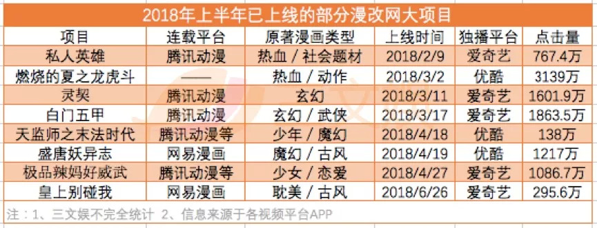 那么,2018 年上半年已经结束,这些漫改作品如何了?