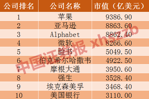 目前美国市值规模最大10家公司