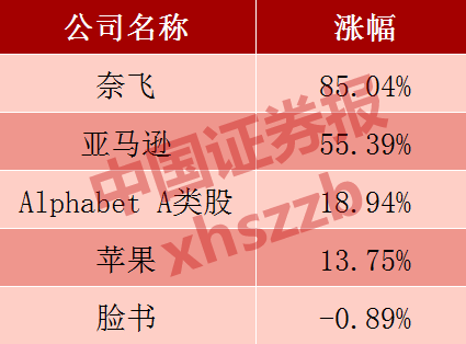 “FAANG”年初至今涨幅(截至7月27日)
