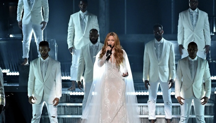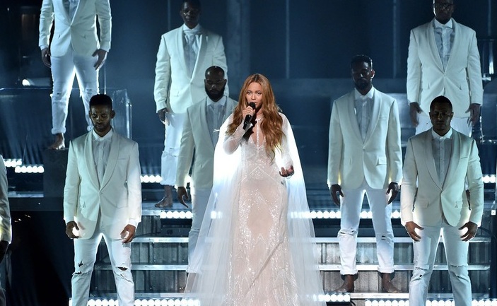 碧昂斯(Beyoncé)凭借六项提名,当之无愧地成为本届格莱美奖晚会的歌坛天后。她本人凭借同名专辑《Beyoncé》获得三项大奖:最佳说唱表演、最佳说唱歌曲以及最佳说唱专辑。在格莱美舞台上,Beyoncé演唱了两首曲目,一首福音歌曲《Take My Hand Precious Lord》,另外还翻唱了传奇哥John Legend为电影《塞尔玛》重新编曲的《Glory》,而这首歌的原作者Prince也出席了本届格莱美的颁奖晚会。而作为1980年代最为炙手可热的摇滚歌手的Prince本人虽然没有演出,他的出现就足以为晚会带了超高人气。