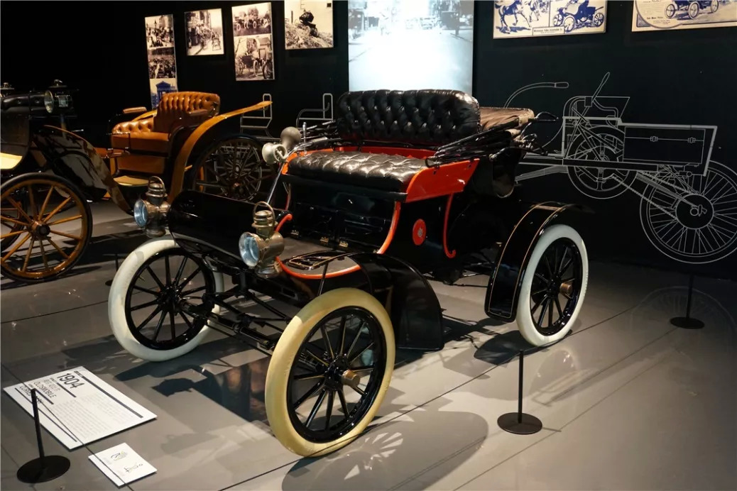 ▲1904年的奥兹莫比尔,此时的汽车就已经演化成了如今主流的四轮形态,而且带有皮革座椅、充气式轮胎、喇叭、悬架、灯光等组件,虽然照明光源采用的是乙炔灯,而且转向机构依然采用比较简洁的导向舵,但已经有一个比较成熟的雏形了。