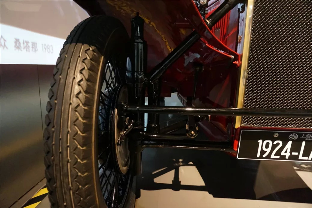▲这种早期的前轮独立悬架还没有如今如此复杂的可活动的导向机构,车轮是通过减震器和直接固定在车身上的连杆连接,另外也可以看到当时装备的充气轮胎已经带有比较复杂的表面纹路。