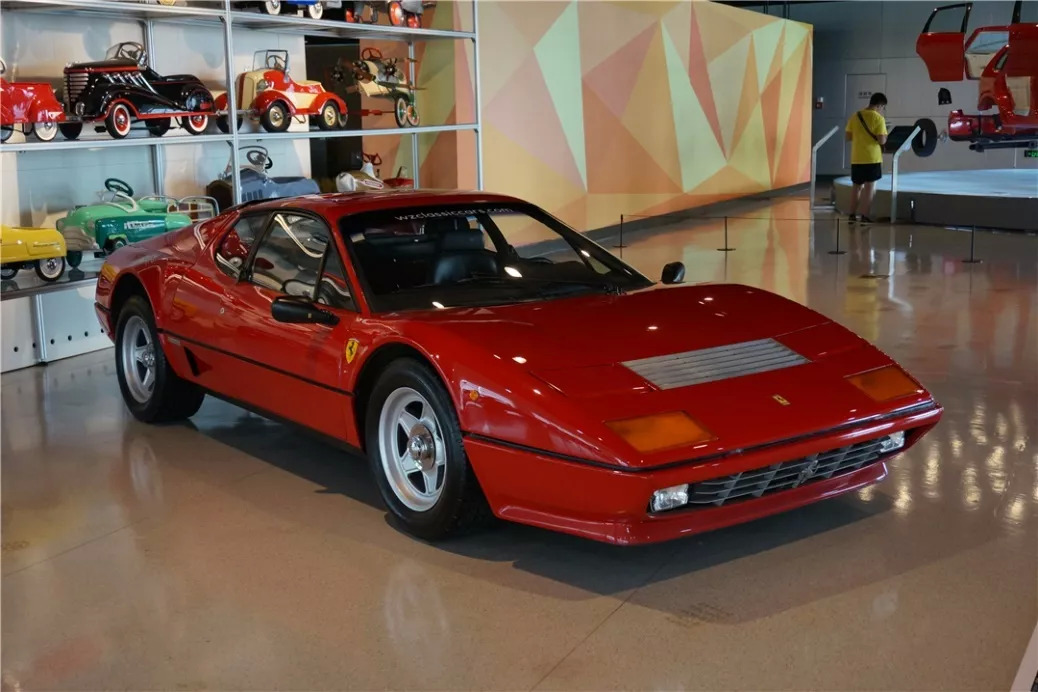 ▲展馆中出现的第三台法拉利——1982年款的512BB,此时恩佐终于下定决心,在高端车型上推广中置布局设计。它出自法拉利的御用设计室——宾利法连那之手,搭载的是一台360马力的5.0L 水平对置12缸发动机,最高时速可突破300km/h。