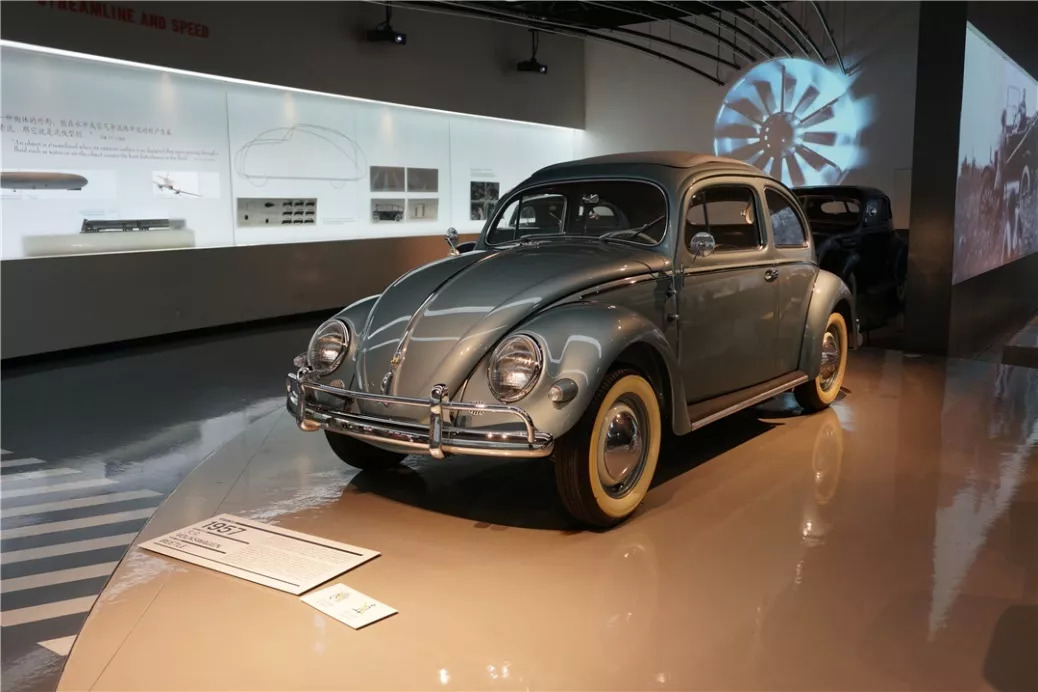 ▲虽然展馆里的这台甲壳虫是制造于1957年的,但它却是诞生于1938年的作品——既是一台跨越了二战前后的经典,也是如今大众和保时捷的共同祖先,总销量超过1500万台,具有重要的历史承接意义,相信很多大众铁杆车迷都可以对它的“威水史”如数家珍了。