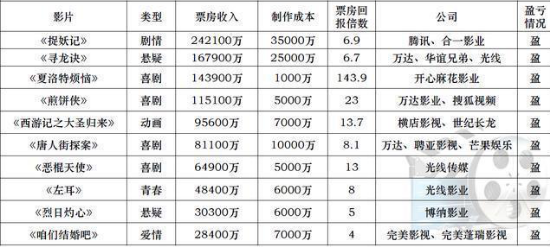 而在具体的投资回报上,喜剧电影的表现也十分惊艳。据中影长隆所整理出电影投资收益表的数据显示,《夏洛特烦恼》投资1000万,票房14.4亿,投资回报143.9倍;《煎饼侠》投资5000万,票房约11.5,回报23倍;《恶棍天使》投资5000万,票房6.5亿,投资回报13倍;《驴得水》投资1500万,票房1.7亿,回报11.5倍;《羞羞的铁拳》投资7000万,票房22亿,投资回报30倍。