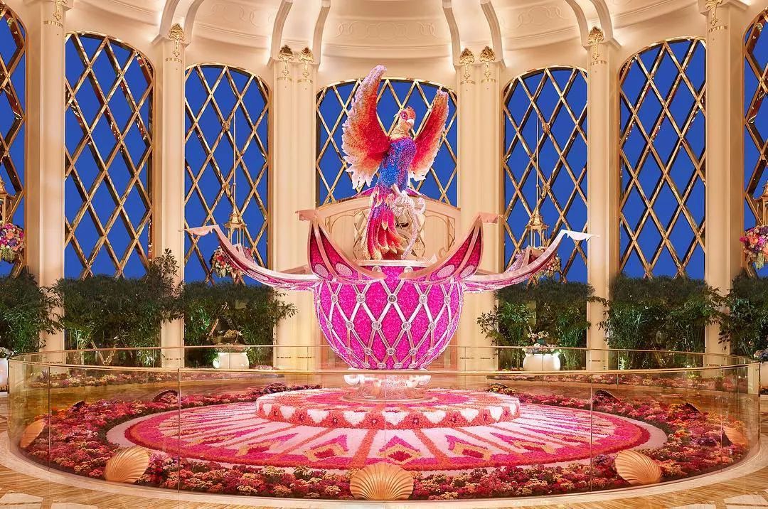 经询问,这个装置被称作“费伯奇彩蛋” ,由超过60,000朵花所制成,花种包括:玫瑰、杜鹃、小玫瑰及绣球花,如此的富丽堂皇,可能便构成了每个人对永利皇宫最初的印象,而这如童话般的皇宫究竟是中国皇宫还是西式宫廷呢?确切的说,这是一种“西方人眼中的中国宫廷风格”,也正是18世纪时法国一度非常流行的中国风。