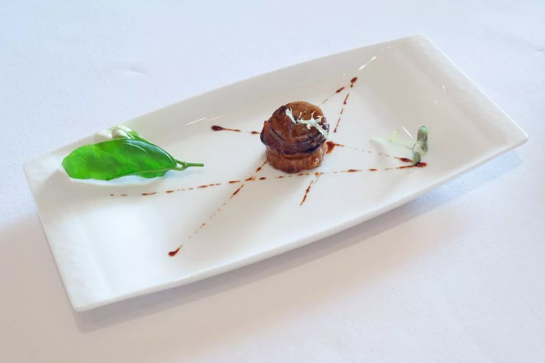 主菜里的“怀旧金钱鹅肝”看起来只有小小的一粒,但里面包含了鹅肝 、梅头肉 、冰肉 、杏鲍菇四层,我一边赞叹菜品的精致一边试图把四层夹在一起吃,但屡试不成后只得作罢。