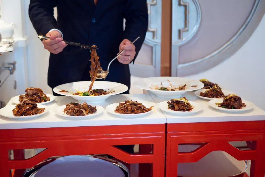 席间另一位美食家老师提出要加一道“干炒牛河”来考考德师傅,据说古时的大户人家招厨师考的一般也是两道菜:鸡蛋炒饭和干炒牛河。越是简单基础的越难发挥,这个道理倒是不难懂,只是感谢德师傅还能满足我们任性的要求。