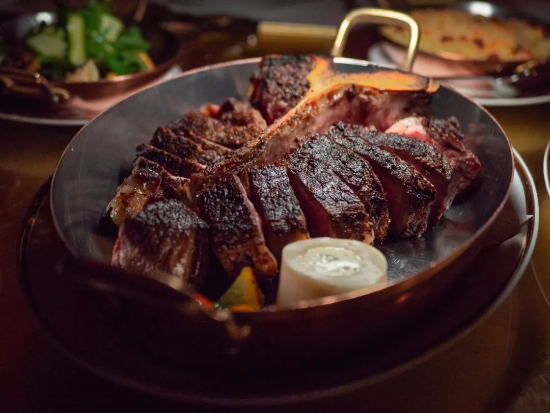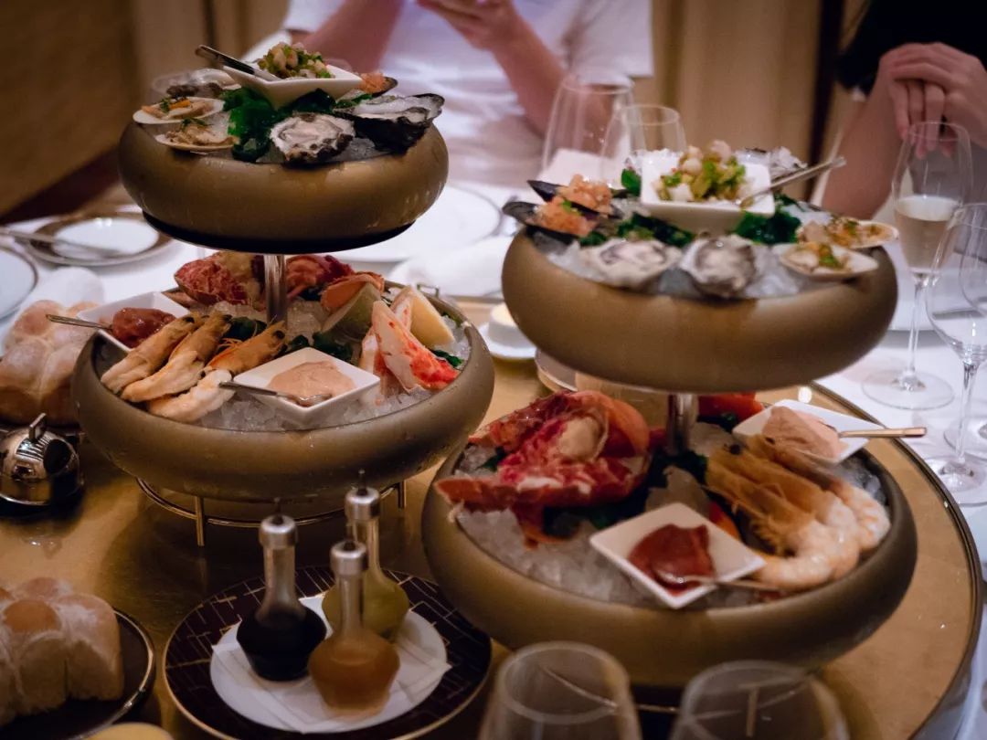 第一道菜便是海鲜,盘中的波士顿龙虾、帝王蟹脚、珍宝大虾、季节性的贝类以及生蚝足以让食客领略到“美式”的生猛。