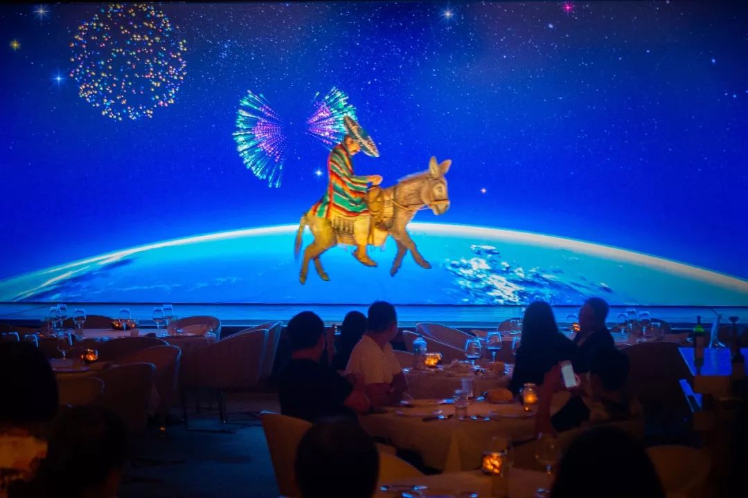 当所有人正沉浸在肉食中无法自拔时,包间的帘子自动打开,灯光全部关闭,所有人都将目光集中在了突然出现的舞台上。是的,永利扒房的最大特色便是这个小剧场表演,官方的介绍是这些剧场以“梦”为主题,但在我看来其中的黑色品味十足,虽然看得不知所云但仍觉有趣。如果是情侣约会的话,这样的表演也会让用餐过程不再无聊。