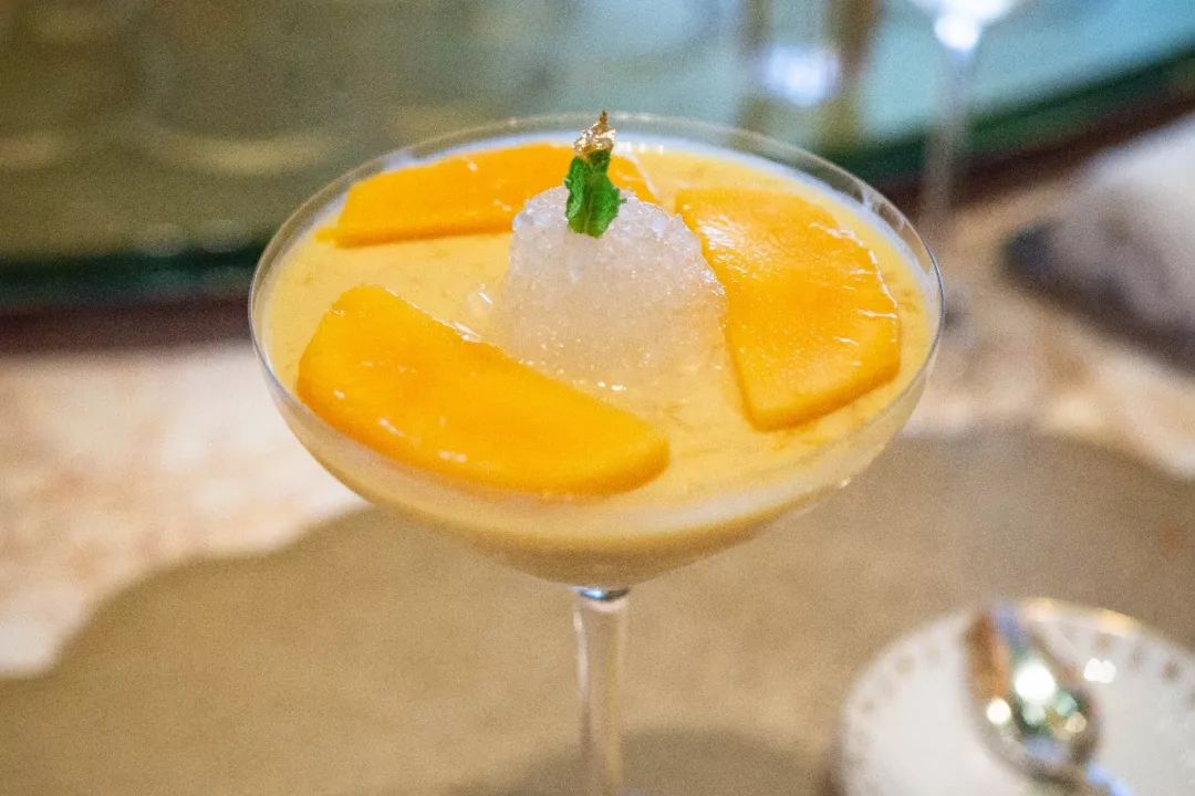 作为一个对甜品从来不感兴趣的人,我承认我被这个“冰镇燕窝香芒布丁”感动了,如果说是因为它加入了大量芒果果肉,但是它却比鲜芒果更像芒果本来的味道。即便在这么一小杯里也有两层不同品种的芒果,吃起来也是先甜后酸。更不用说中间的一小坨冰燕窝,代替了冰沙的位置,不仅奢华而且口感更加温和。
