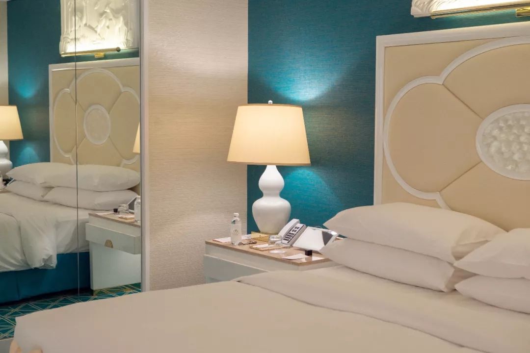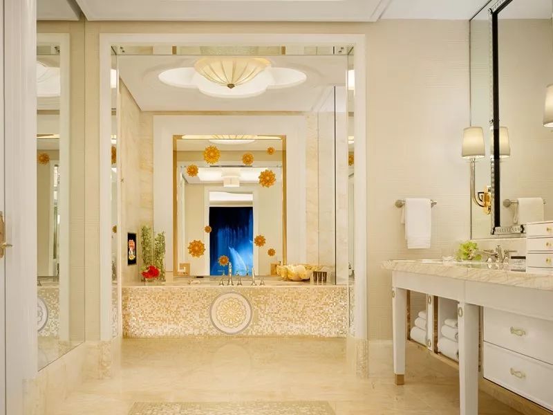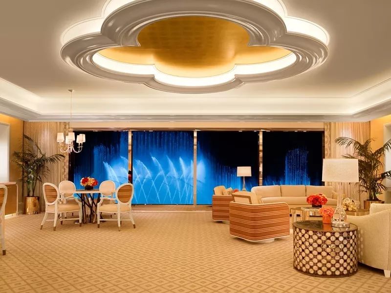 在第二天的下午,我们随酒店工作人员参观了完整的永利皇宫,首先看到的是面积最大的表演湖景尊贵套房,面积高达269平方米,还享受私人管家服务。