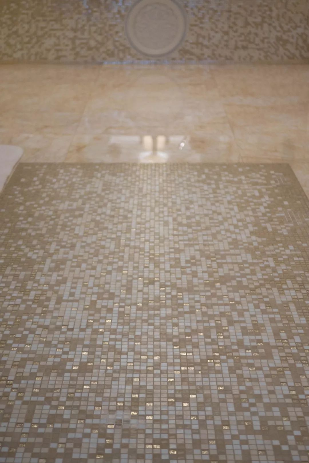 房间地面上的地砖也是咖啡金色的,有一种高端的奢华美感。