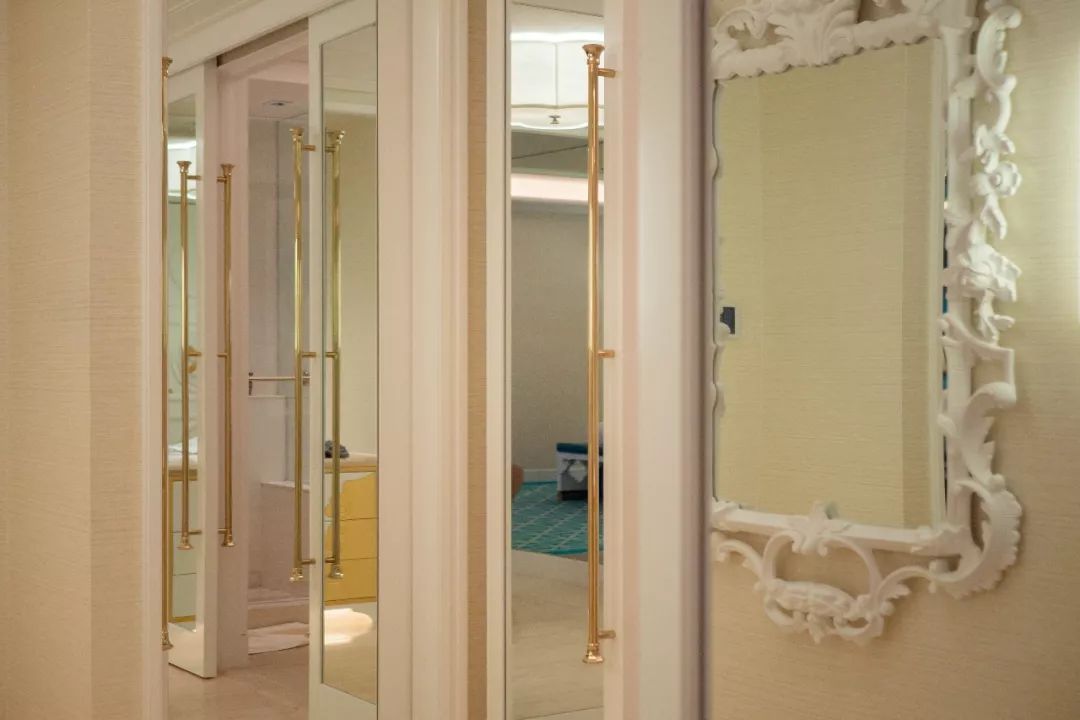 我的房间里到处都是镜子,一方面扩充了视觉空间,另一方面也造福了那些喜欢对着镜子自怜自爱的人。可以注意到,即便只是墙上所挂的一面镜子上也有复杂的雕花外框,房间内这样的细节数不胜数。