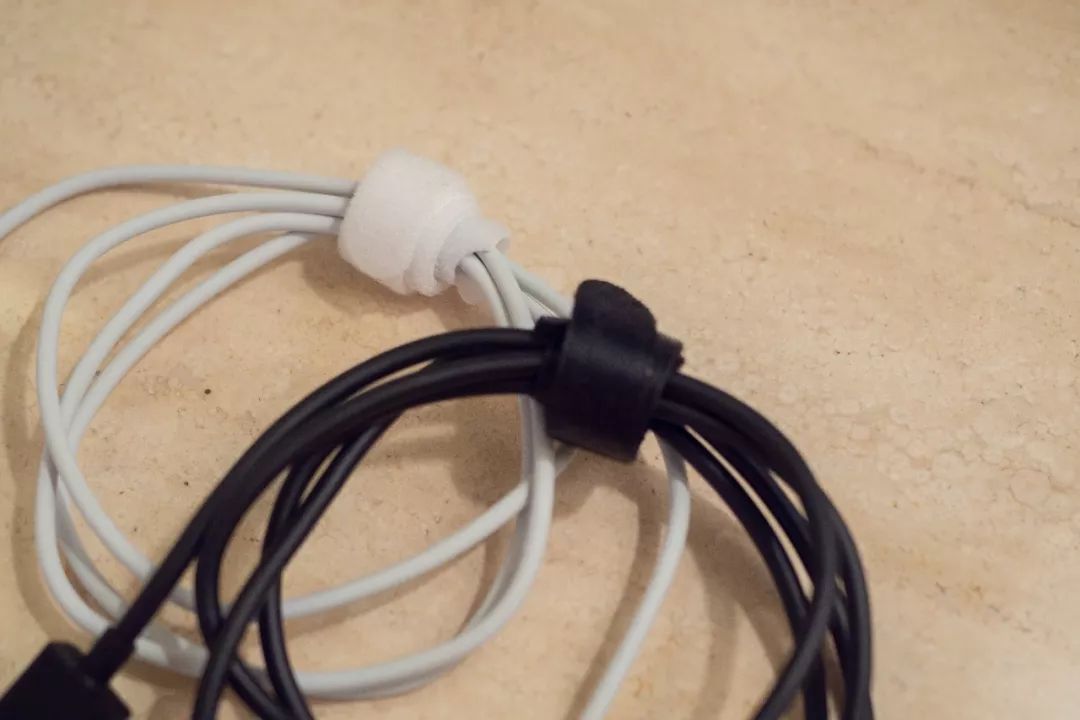 酒店的清洁服务则是强迫症的典范。在一天晚上回到房间后,我发现我所携带的一黑一白两根数据线分别被同样颜色的绑带绑好放在桌上,而桌上使用过的纸巾再一次被小心翼翼地叠出了一个三角形。