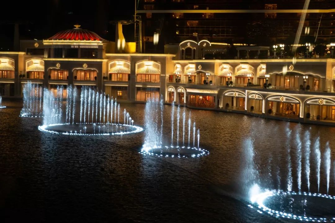 永利皇宫另一大特色项目就是户外的喷泉表演湖,夜幕下的湖面每隔二十分钟就会开始一次表演。