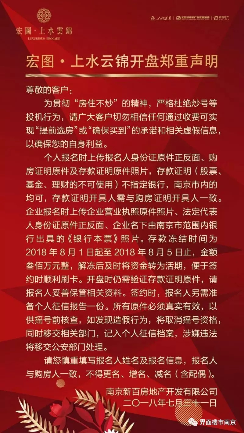 昨天,宏图上水云锦微信公众号就发布了一条“郑重声明”,本次登记摇号的存款证明需要证明原件,并且在开盘时还会进行核查,这主要是为了防止存单造价。