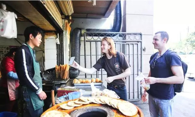 ▲两个老外体会杭州“无现金支付”