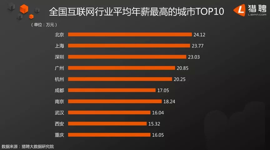 ▲全国互联网行业平均年薪最高的城市TOP10