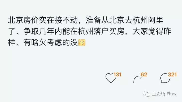陈剑毕业后在北京工作了6年,结婚之后,开始考虑以后小孩的上学问题,所以必须买房,他们夫妻俩合计了一下家里的储蓄,在北京,买房基本没戏。2016年4月份,陈剑妻子提议,要不改去杭州发展吧。工作定下来之后,两人加上父母的帮助,立刻就在杭州买了房。