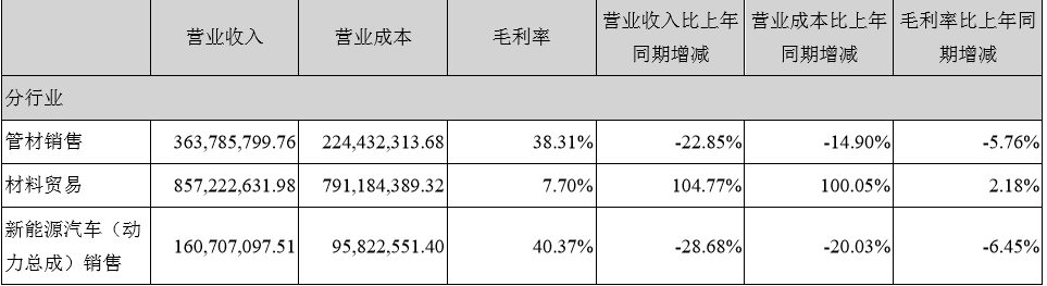就公司往年业绩看来,纳川股份扣非净利润均在千万左右,去年公司业绩较往年增幅较大。2017年财报显示,分行业来看,材料贸易为公司贡献了绝大部分的营收,不过毛利率却不及管材销售和新能源汽车销售。